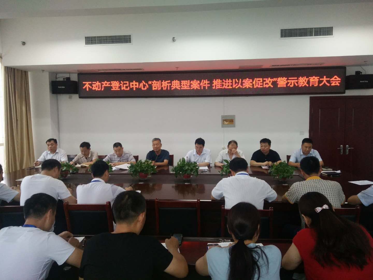 大会宣读了不动产登记中心“剖析典型案件 推进以案促改”专题工作方案,宣读了市纪委下发的《关于开展案件剖析做好以案促改工作通知书》和十八大以来查处的本单位案件当事人的处分决定,相关案件当事人在大会上做了反思发言,房地产市场监管科、抵押登记科等重点科室岗位代表作了表态发言。